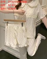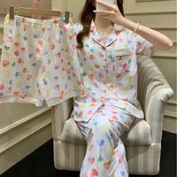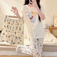 Comercio exterior Venta caliente Pijamas de mujer Verano Nube Algodón Pantalones cortos de manga corta Pantalones largos Conjunto de tres piezas Ropa de casa